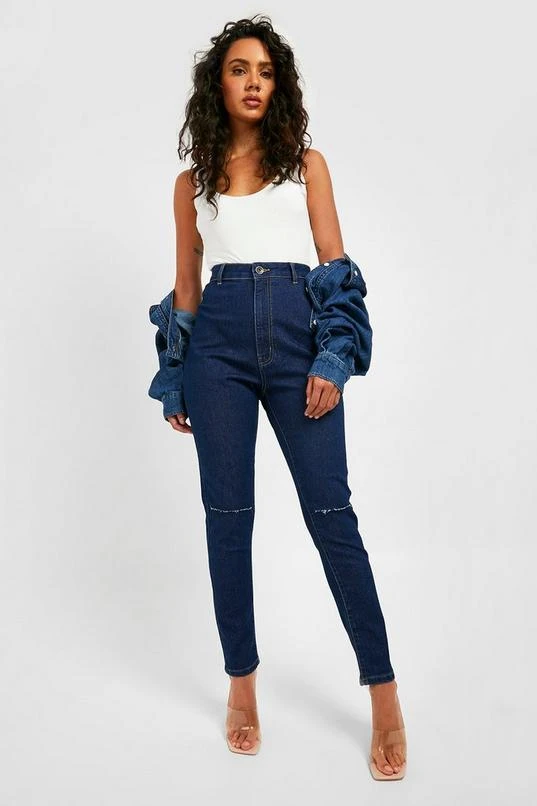 BOOHOO Basics High Waisted Ripped Disco Skinny Jeans