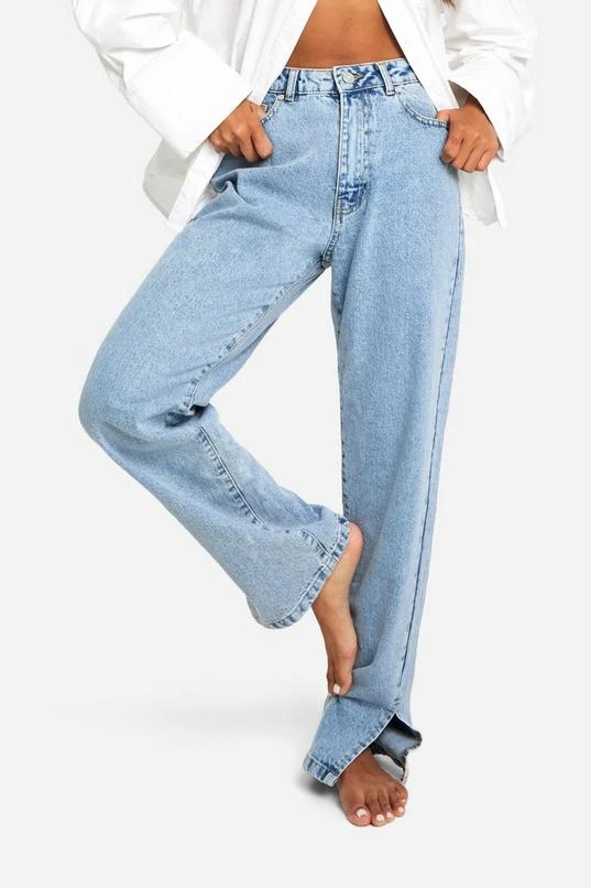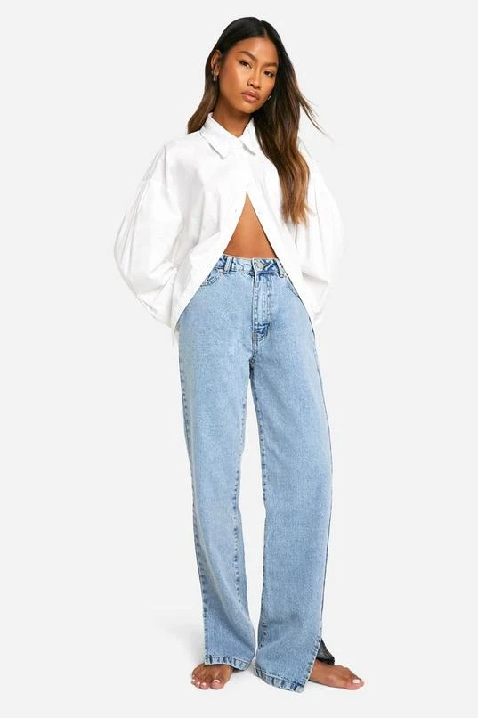 BOOHOO Basics High Waisted Split Hem Straight Leg Jeans