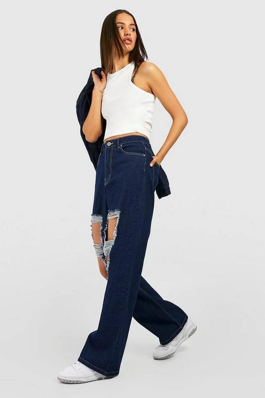 BOOHOO Basics Mid Rise Ripped Boyfriend Jeans