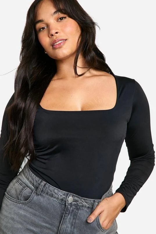 Boohoo Basics Plus Double Layer Slinky Square Neck Bodysuit