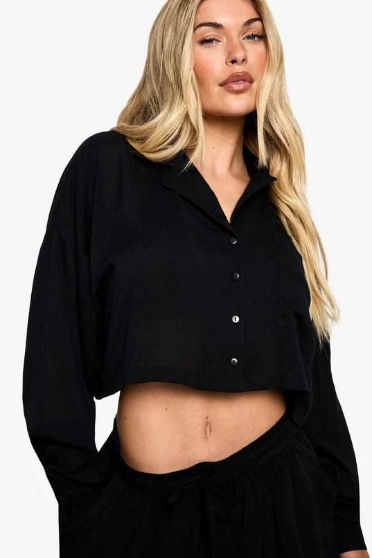 BOOHOO Beachwear Essentials Cropped Long Sleeve Shirt