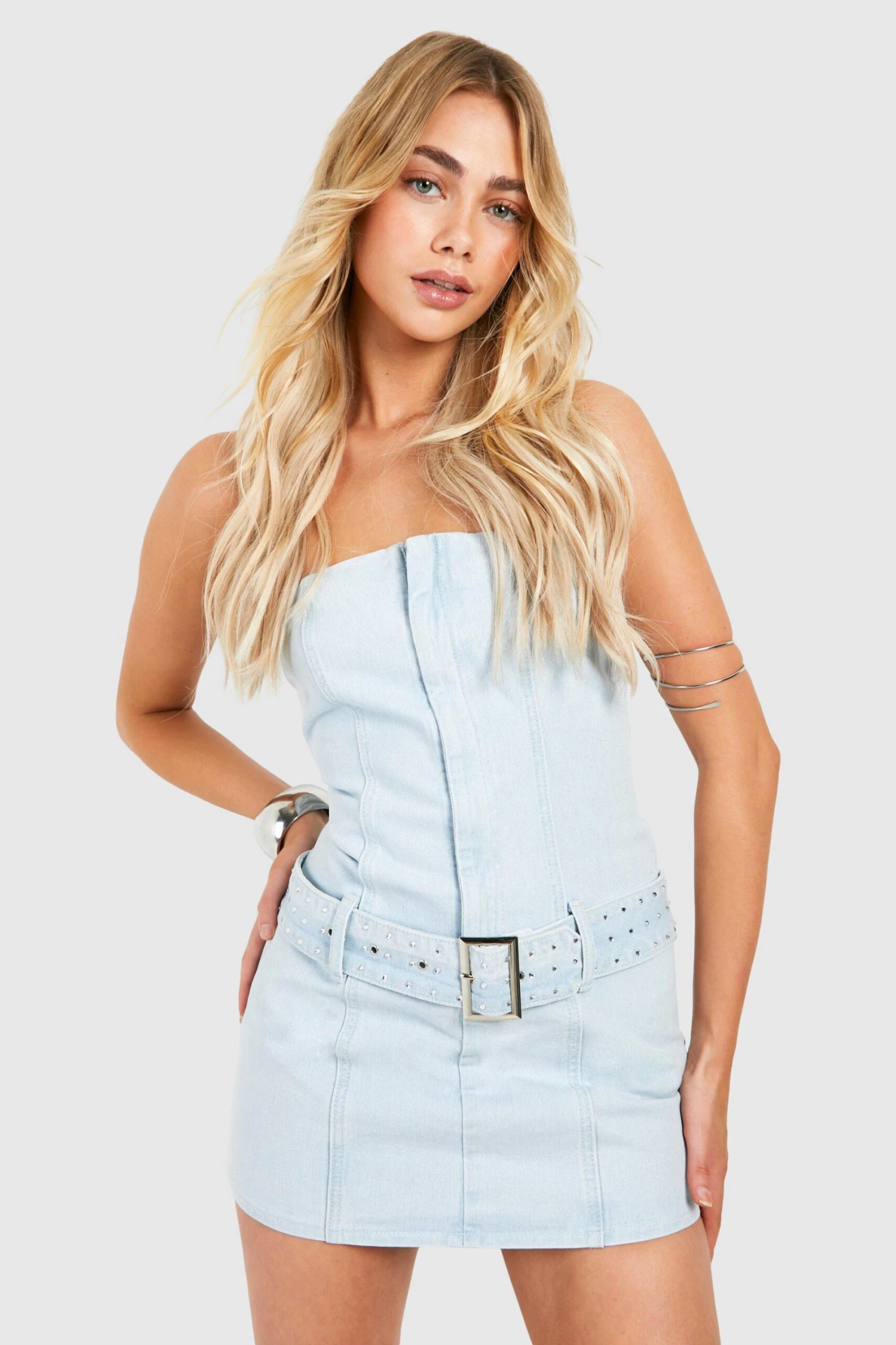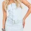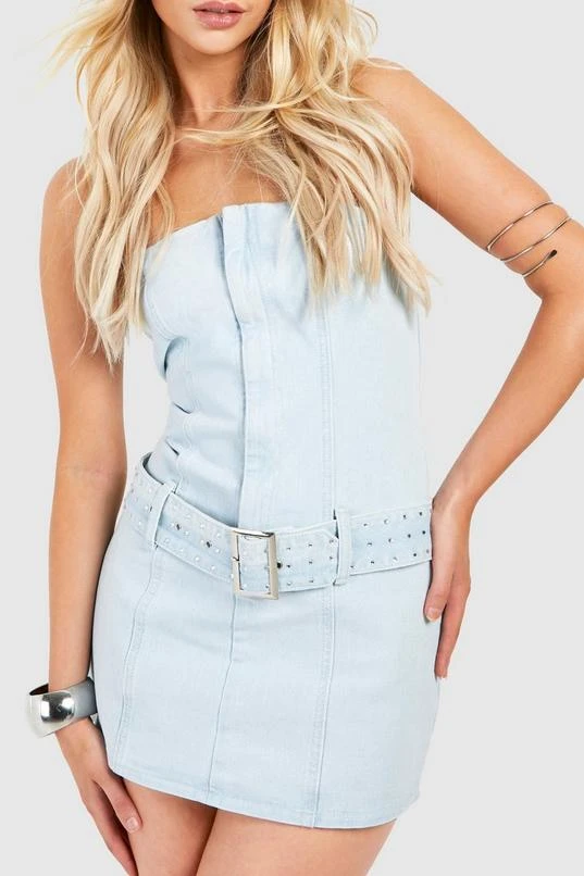BOOHOO Belted Bandeau Denim Mini Dress