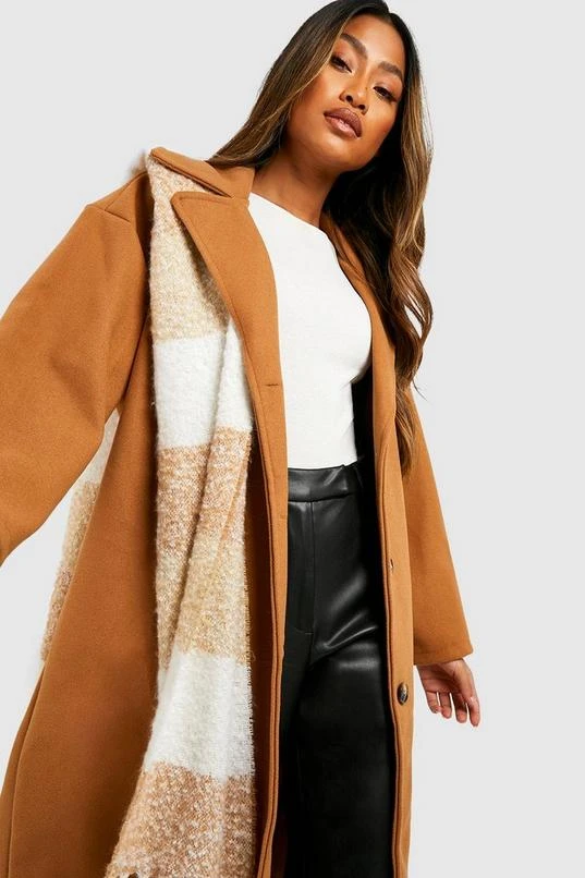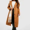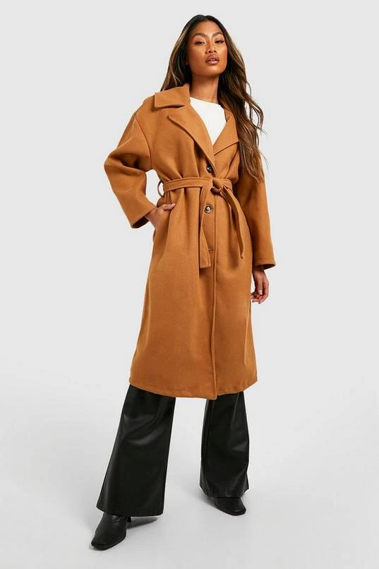 BOOHOO Belted Button Through Wool Look Coat