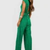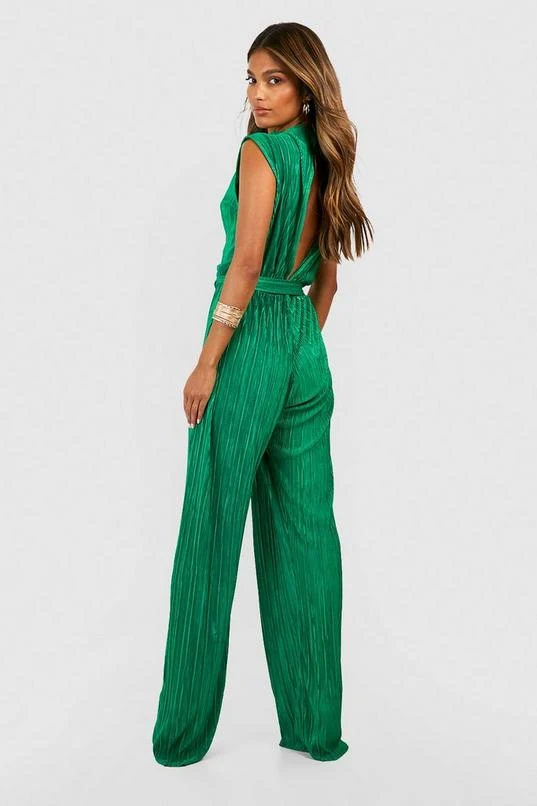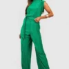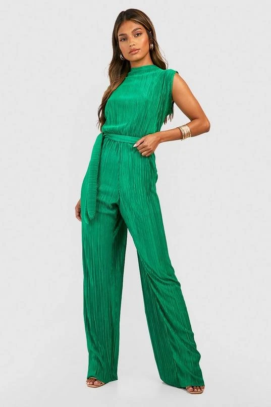 BOOHOO Belted Plisse Wide Leg Jumpsuit