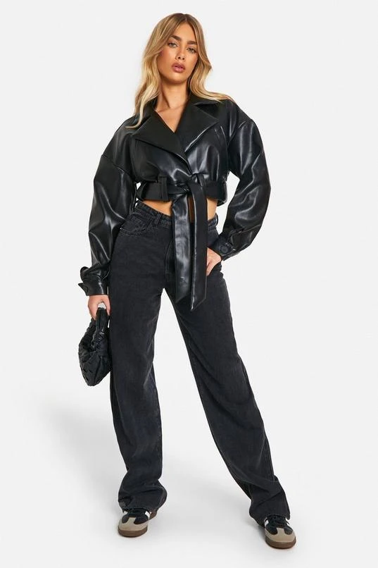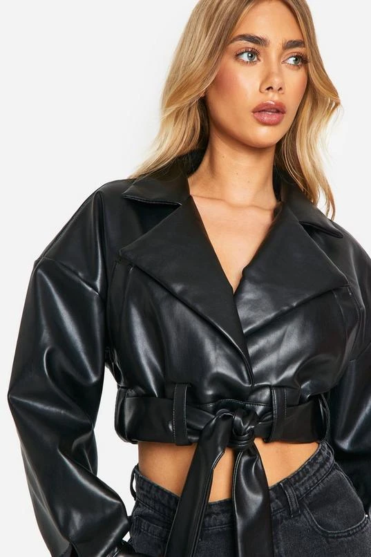 BOOHOO Belted Super Crop Moto Jacket