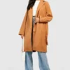 Get cozy this season in this wool coat, sporting a button-up front and shallow pockets; this piece is perfect for layering in colder months. The oversized collars and wide neck opening of this wool look coat are flattering on all bust sizes and can be worn for any occasion. Add sweatpants and a tank top for quickly running errands on cold days or mom jeans and a racerback bodysuit when you’re heading out for food with friends. This women’s wool coat will always have your back.