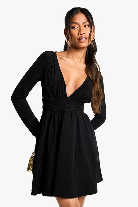 BOOHOO Bengaline And Slinky Mix Plunge Mini Dress