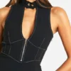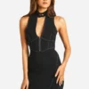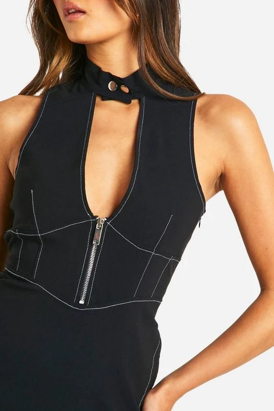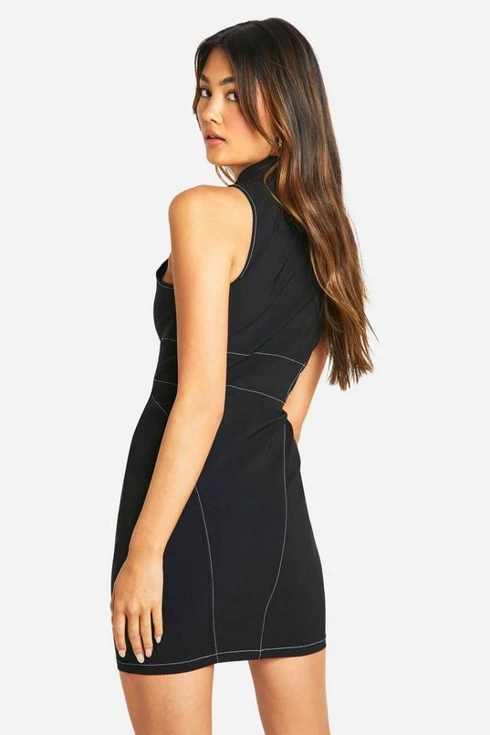 BOOHOO Bengaline Contrast Stitching Zip Mini Dress