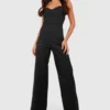 BOOHOO Bengaline Metallic Bandeau Flare Jumpsuit