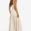 BOOHOO Bengaline Square Neck Maxi Skater Dress