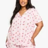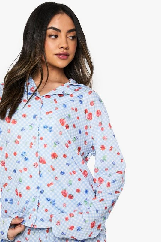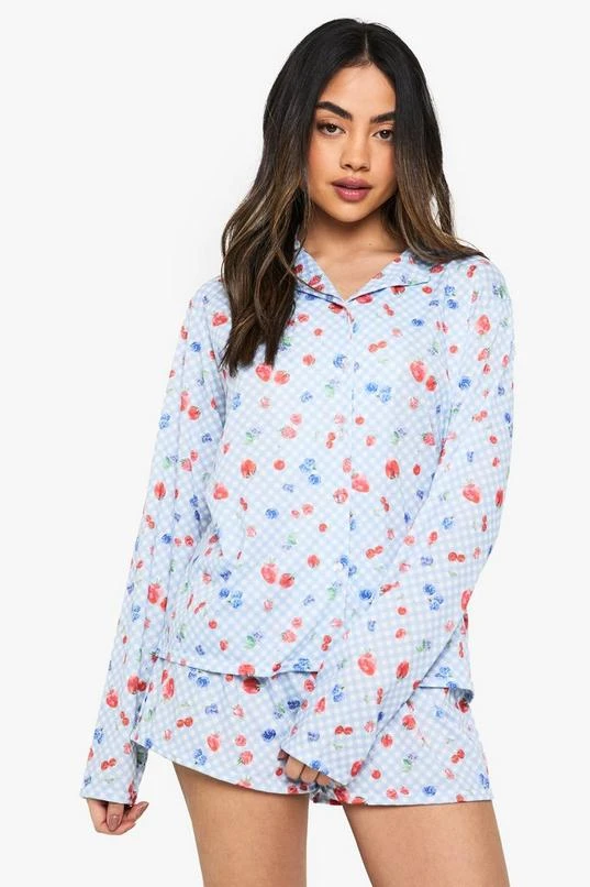 BOOHOO Berry Print Long Sleeve Shirt & Shorts Pyjama Set