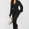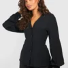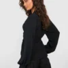 BOOHOO Black Hammered Volume Sleeve Fitted Blouse