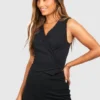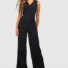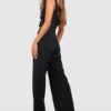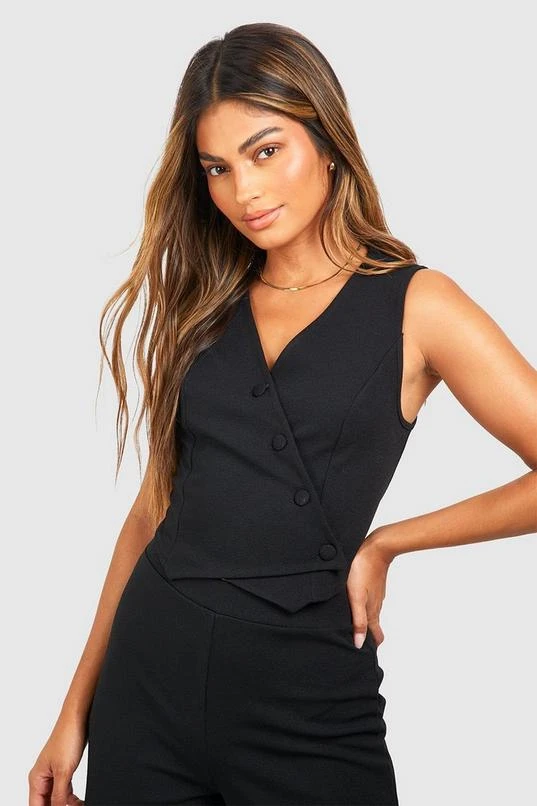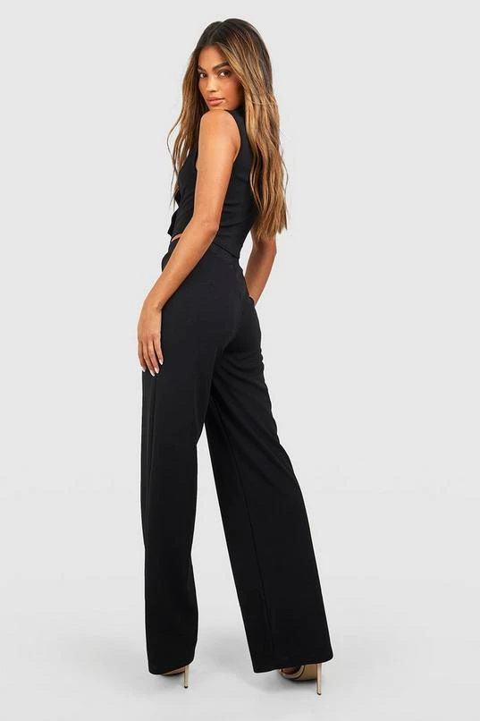 BOOHOO Black Jersey Crepe Asymmetric Waistcoat & Wide Leg Trousers