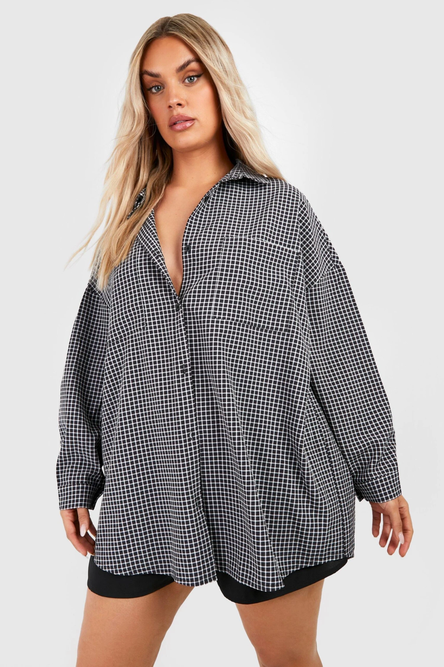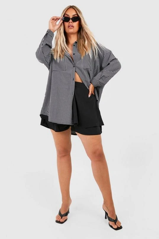 BOOHOO Black Plus Gingham Check Oversized Shirt