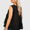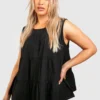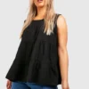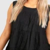 BOOHOO Black Plus Tiered Poplin Smock Top