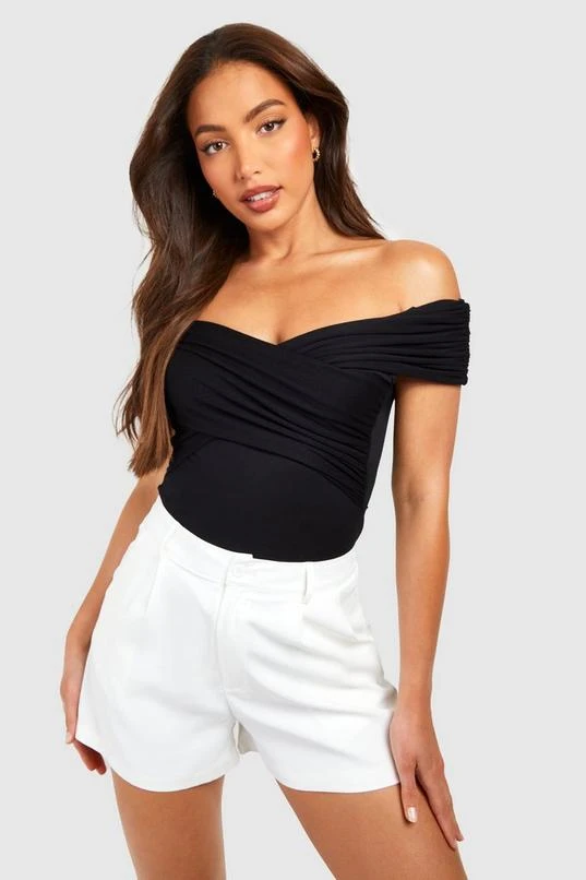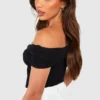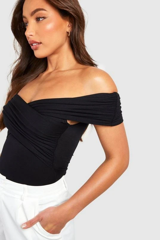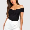 BOOHOO Black Tall Bardot Ruched Detail Bodysuit