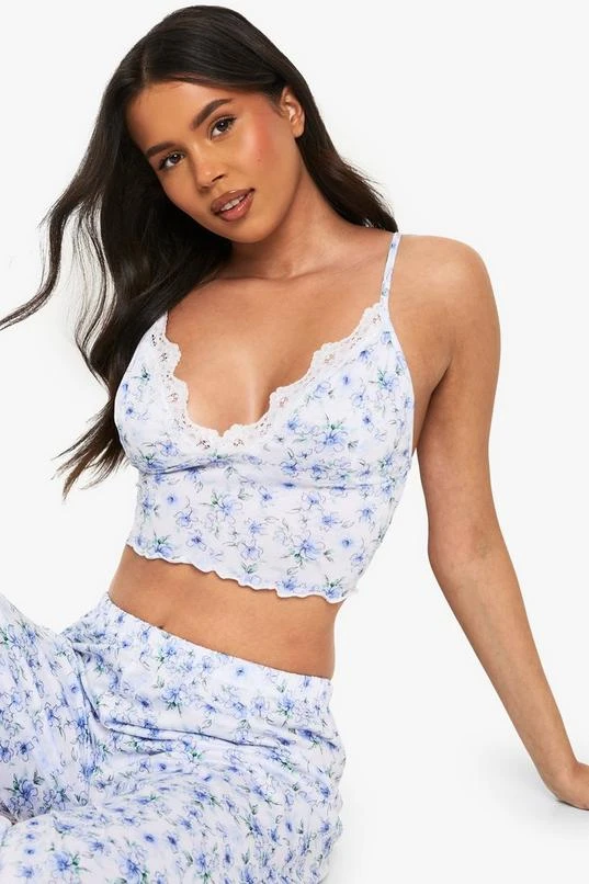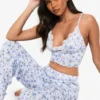 BOOHOO Blue Floral Print Cami Top & Trousers Pyjama Set