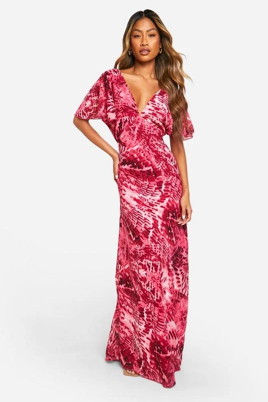 BOOHOO Blur Print Angel Sleeve Maxi Dress