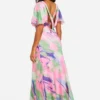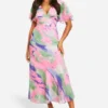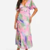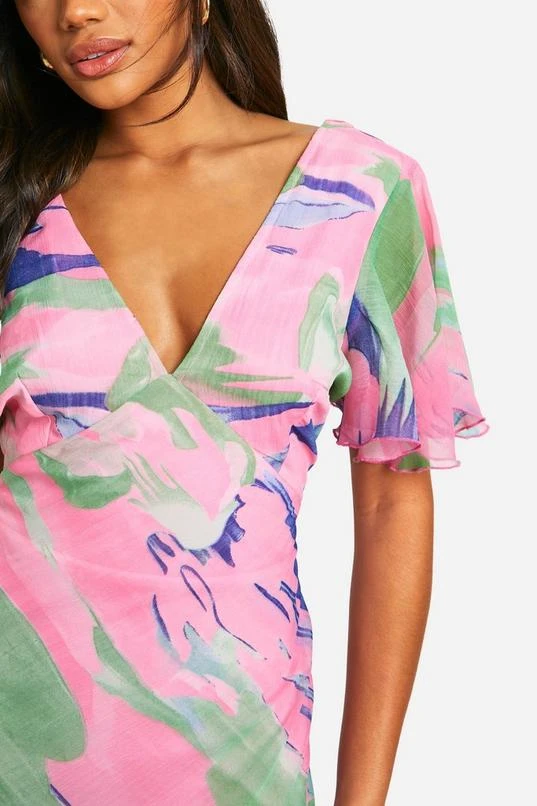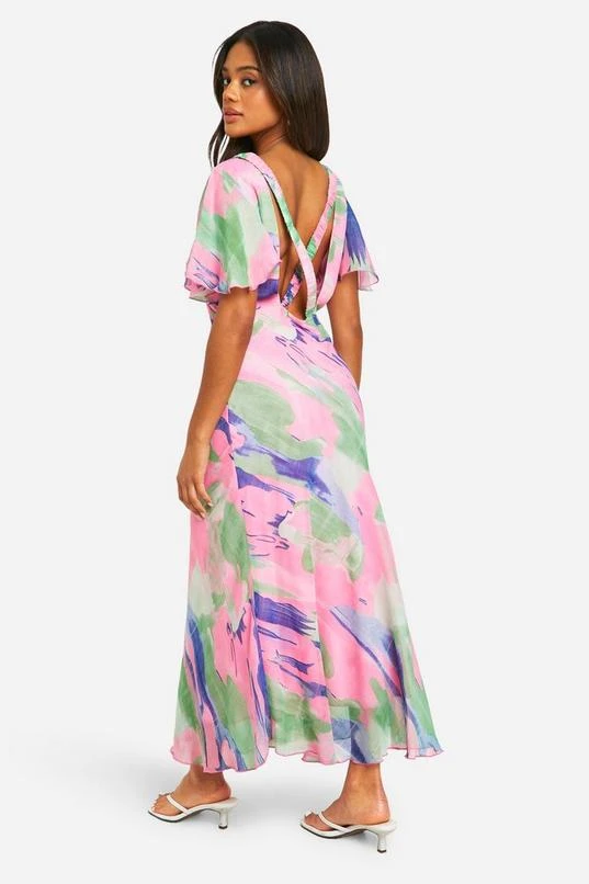BOOHOO Blur Print Chiffon Angel Sleeve Midaxi Dress