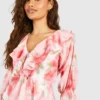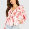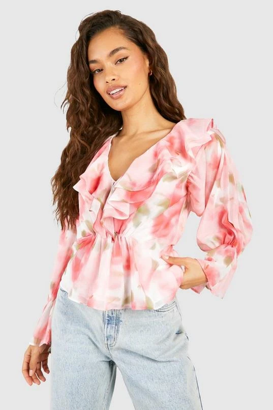 BOOHOO Blurred Floral Chiffon Ruffle Blouse