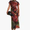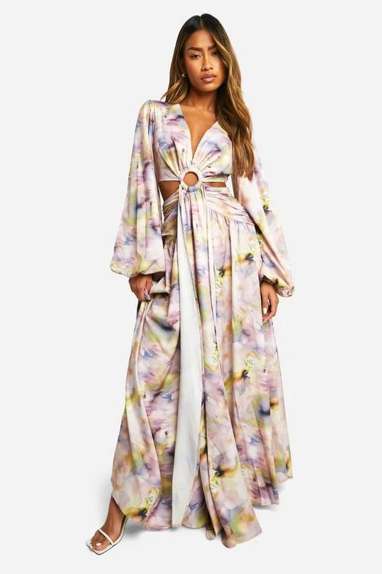 BOOHOO Blurred Print Cut Out Ring Detail Maxi Dress