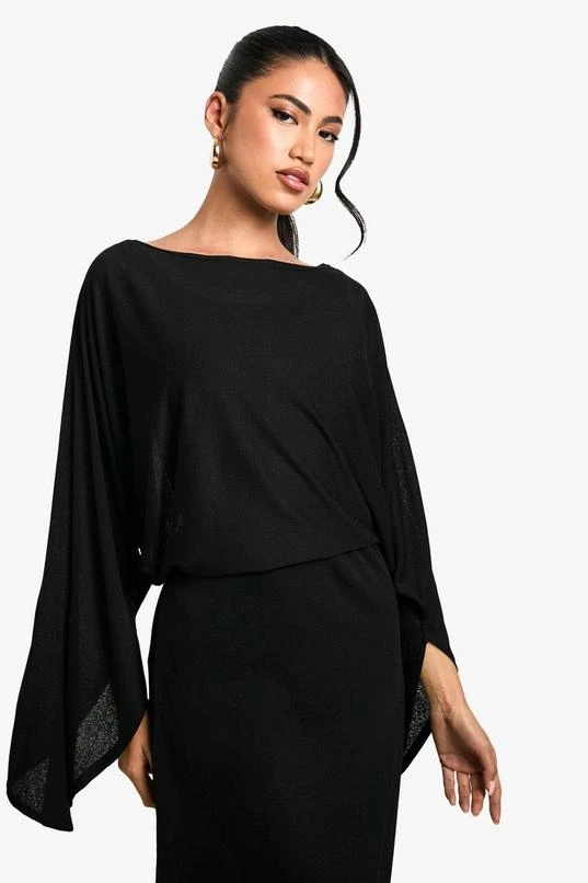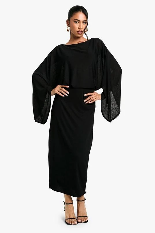 BOOHOO Boat Neck Flare Sleeve Midi Dress