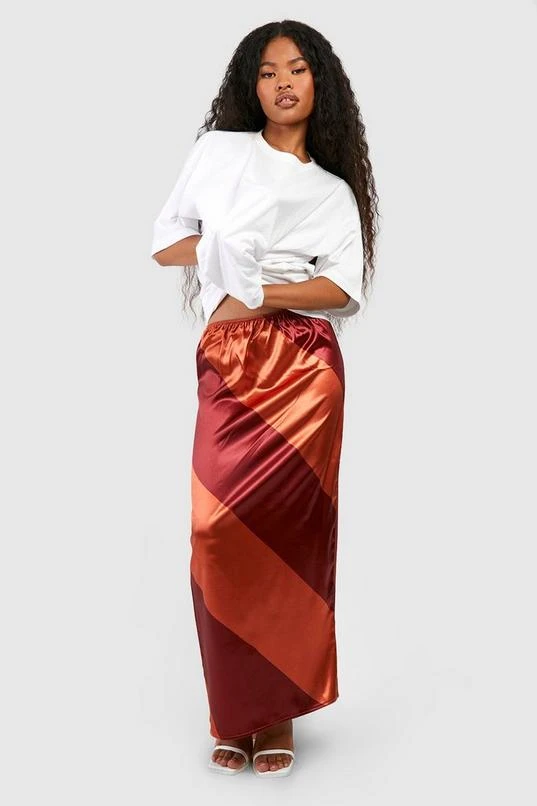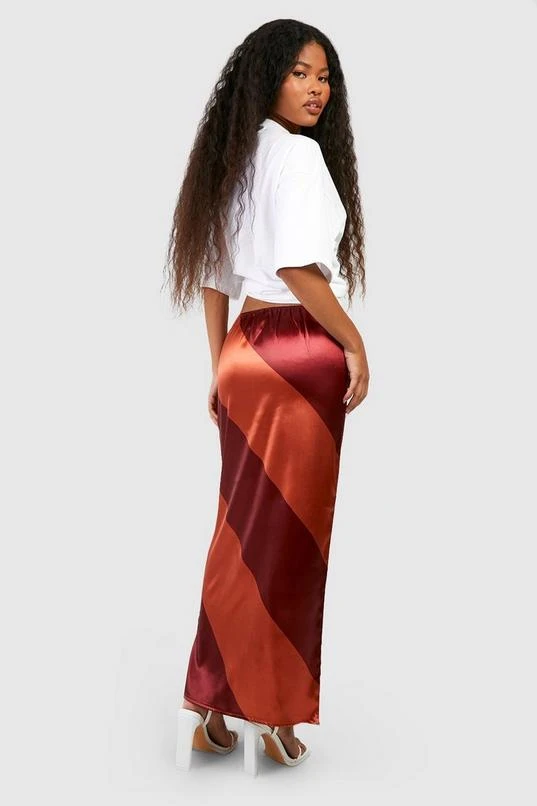 BOOHOO Bold Stripe Satin Midaxi Skirt
