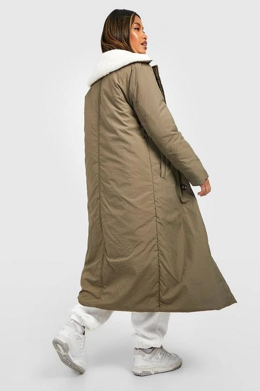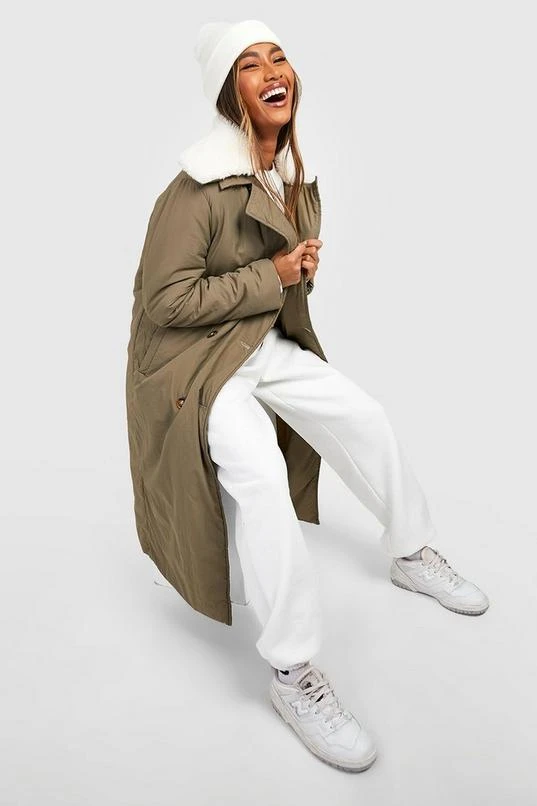 BOOHOO Borg Collar Padded Trench Coat