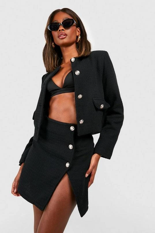 BOOHOO Boucle Button Detail Skirt