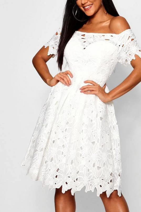 BOOHOO Boutique Off Shoulder Lace Skater Dress