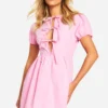BOOHOO Bow Front Mini Smock Dress