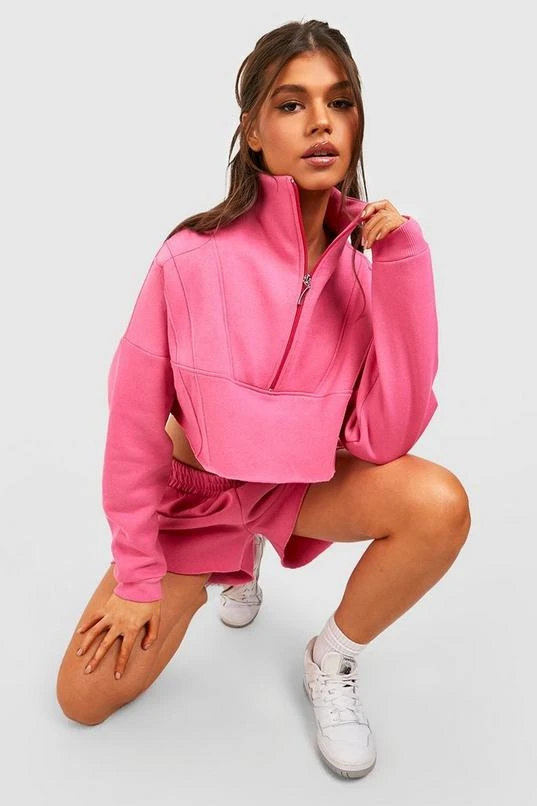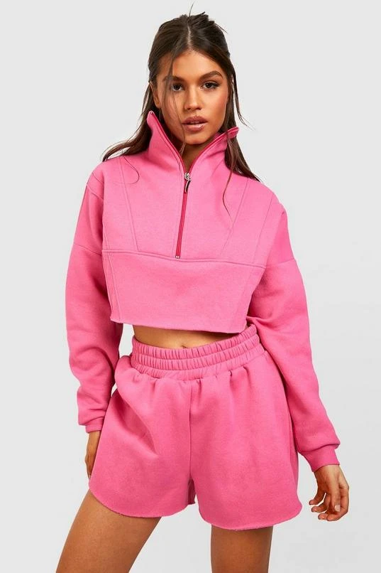 BOOHOO Boxy Half Zip Sweat And Short Tracksuit