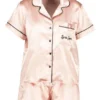 BOOHOO Bride Squad Satin Embroidered Pj Short Set
