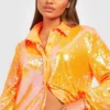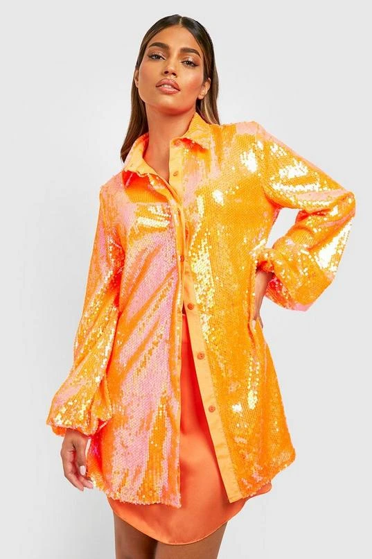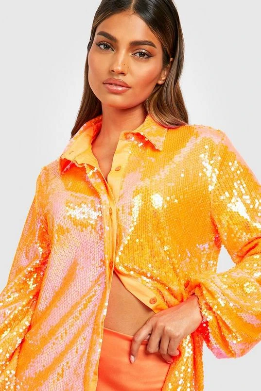 BOOHOO Bright Sequin Balloon Sleeve Oversized Shirt