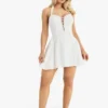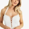 BOOHOO Broderie Lace Up Corset Detail Mini Dress