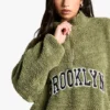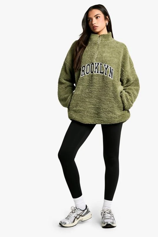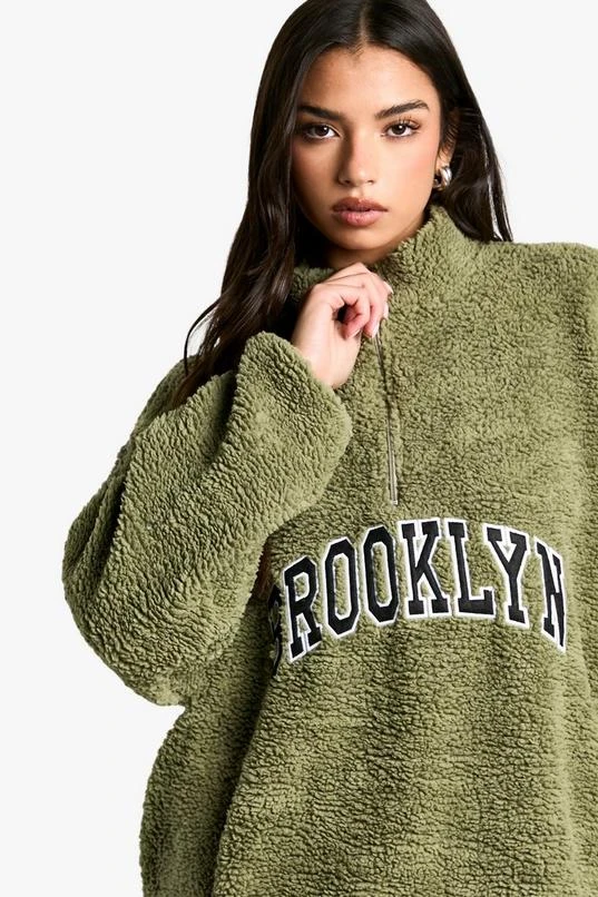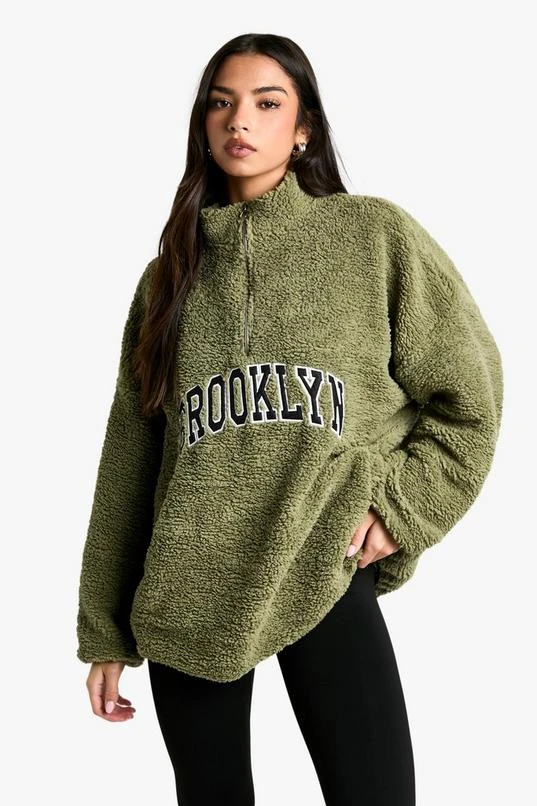 BOOHOO Brooklyn Applique Borg Half Zip Fleece