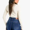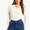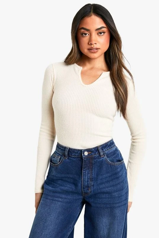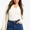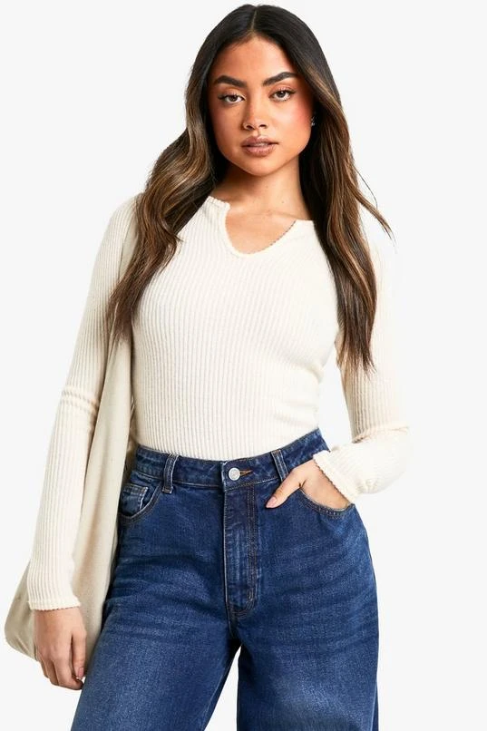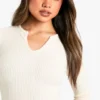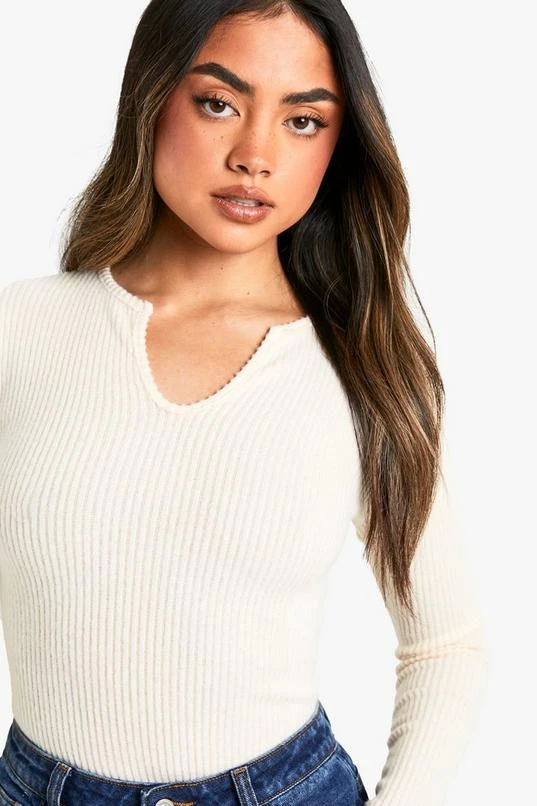 BOOHOO Brushed Chunky Rib Notch Front Long Sleeve Top