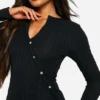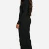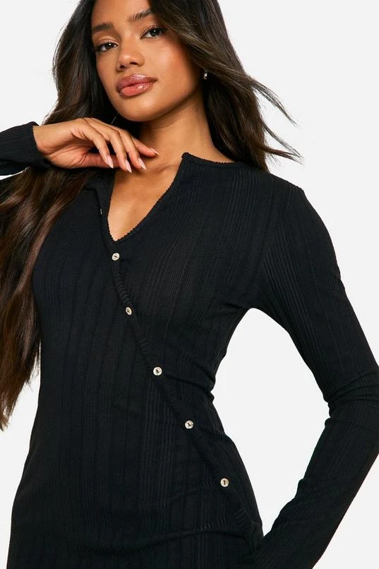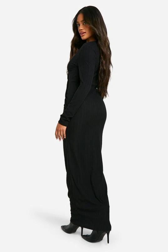 BOOHOO Brushed Rib Button Down Maxi Dress