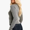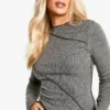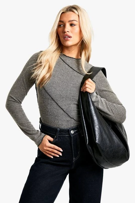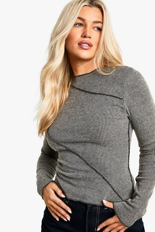 BOOHOO Brushed Rib Exposed Seam Long Sleeve Top