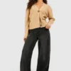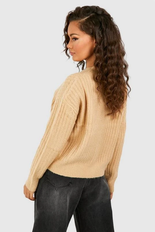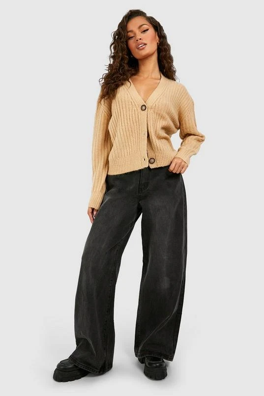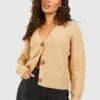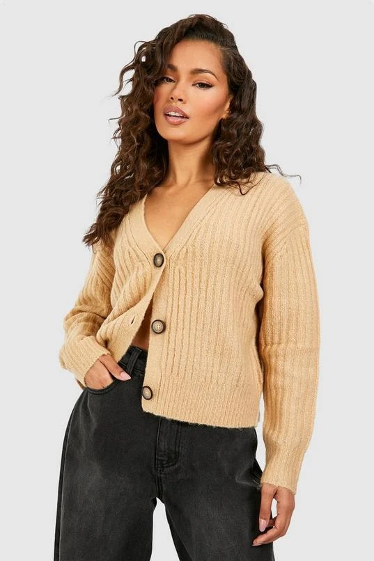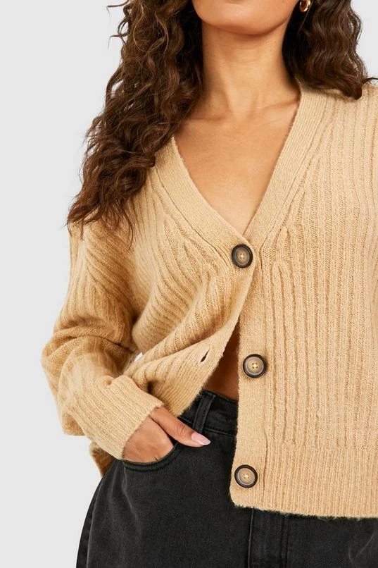 BOOHOO Brushed Rib Knit Button Through Crop Cardigan