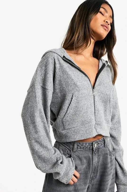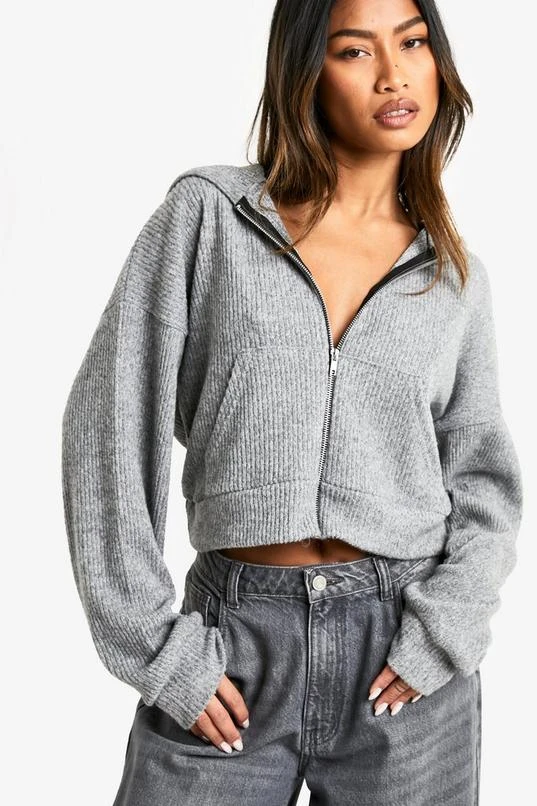 BOOHOO BRUSHED RIB ZIP THROUGH HOODIE