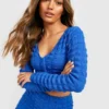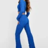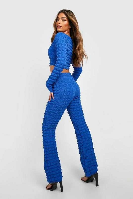 BOOHOO Bubble Jersey Knit Hook & Eye Crop & Flare