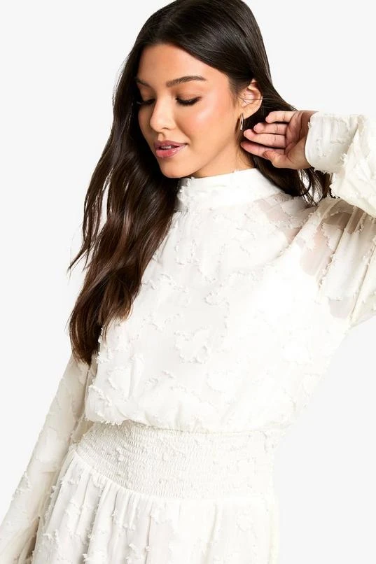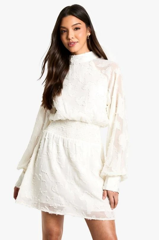BOOHOO Burnout Floral High Neck Skater Dress
