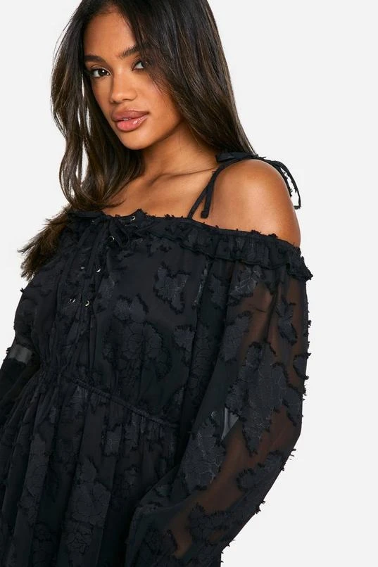 BOOHOO Burnout Floral Lace Up Front Mini Dress