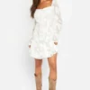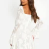 BOOHOO Burnout Floral Milkmaid Mini Dress