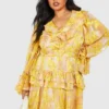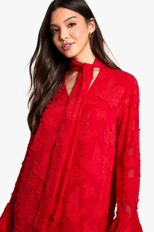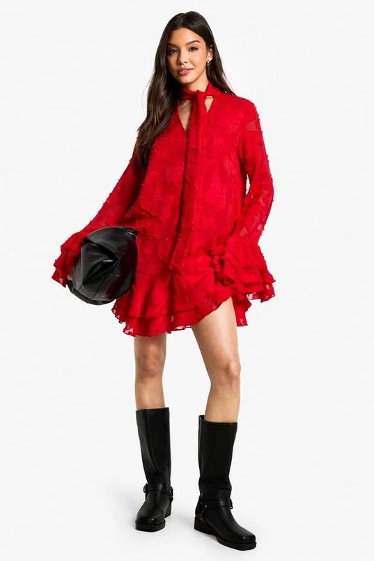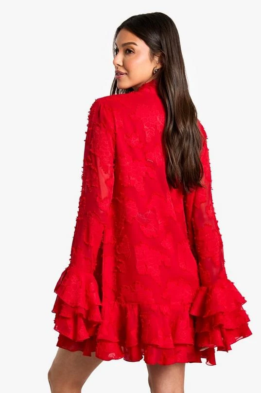BOOHOO Burnout Floral Ruffle Smock Dress
