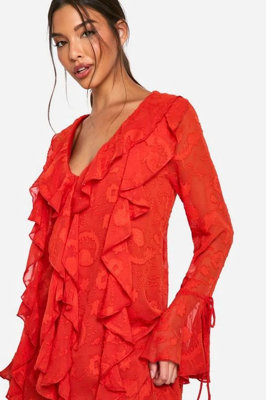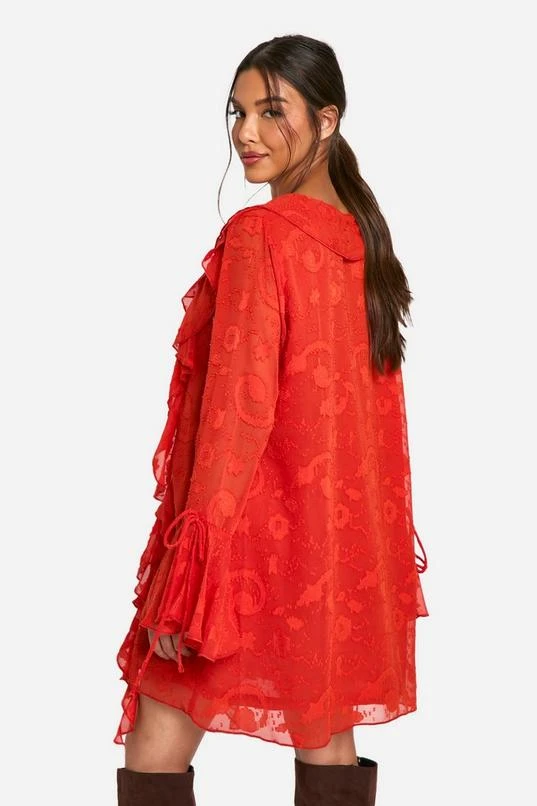 BOOHOO Burnout Paisley Ruffle Mini Dress