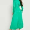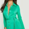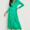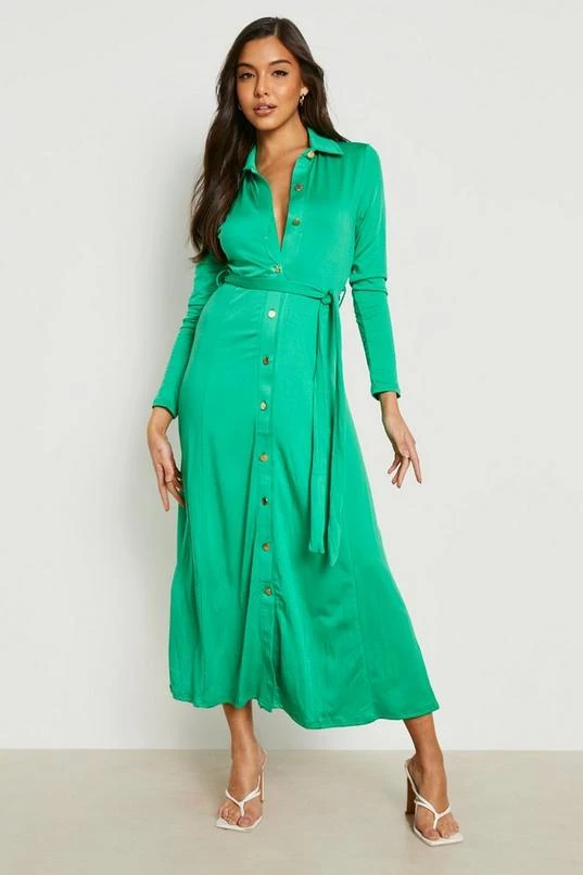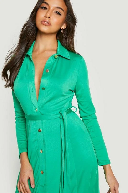 BOOHOO Button Detail Belted Midi Shirt Dress