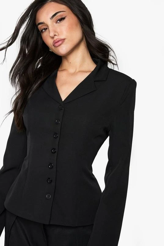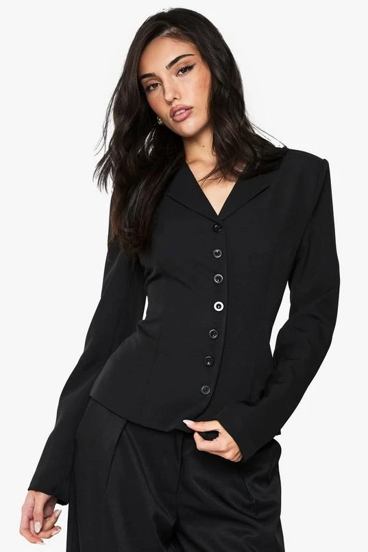 BOOHOO Button Detail Fitted Cinched Blazer