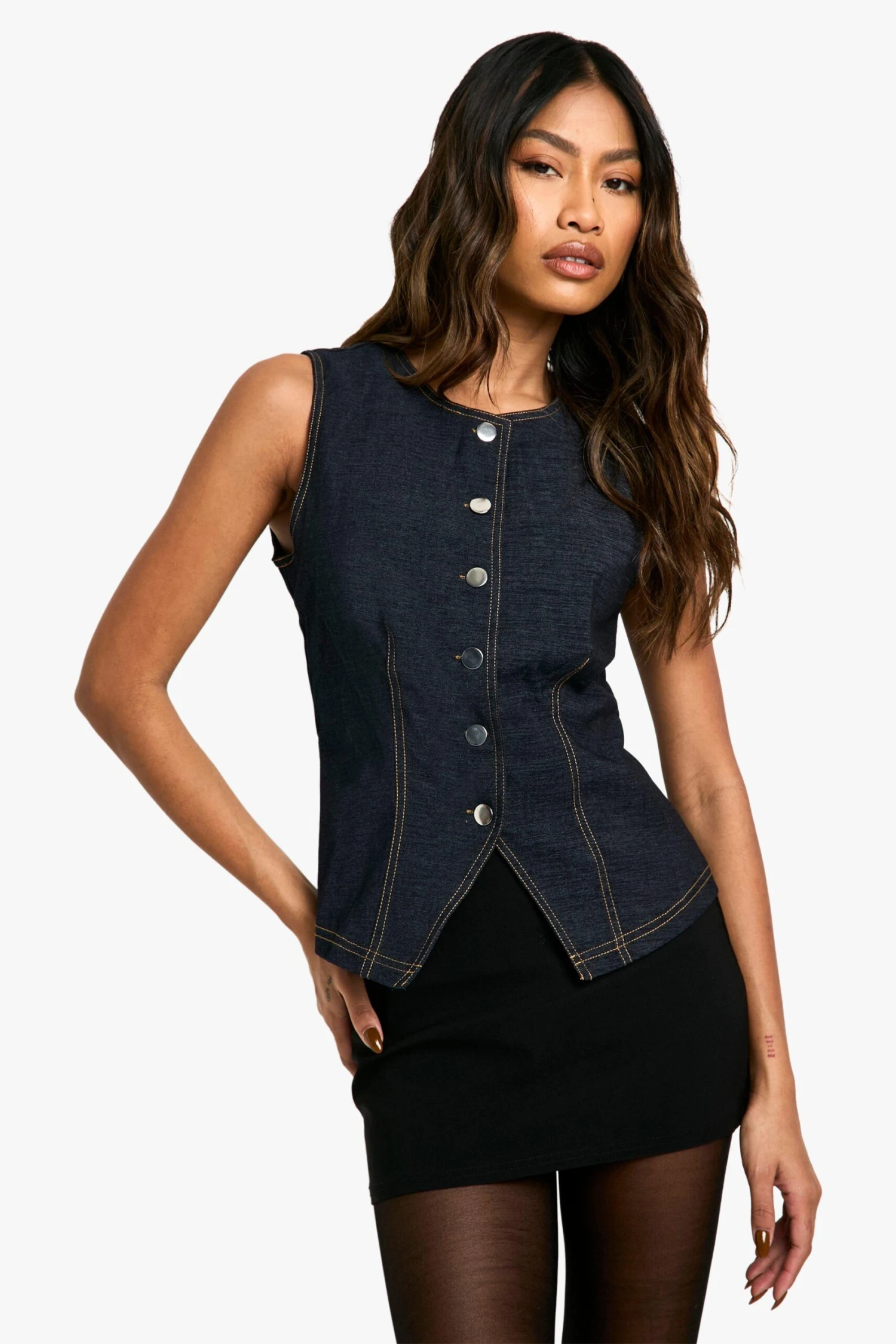 BOOHOO Button Front Longline Stretch Waistcoat